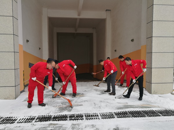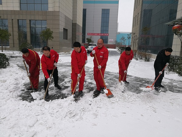 勞動(dòng)現(xiàn)場(chǎng),全體黨員不畏嚴(yán)寒,協(xié)調(diào)配合、齊心協(xié)力,用鐵鍬和掃帚等工具清掃公司廠區(qū)內(nèi)積雪,大家爭(zhēng)先恐后,干勁十足,忙碌的身影構(gòu)成了一道亮麗的風(fēng)景線。經(jīng)過(guò)近兩個(gè)小時(shí)的奮戰(zhàn),將廠區(qū)大門前、車庫(kù)前、行政樓前主要道路的積雪清掃干凈,為大家開辟了一條洋溢著溫情的通暢之路。